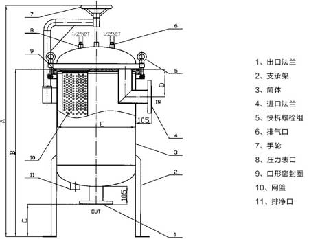3.快開(kāi)多袋式過(guò)濾器,20秒即可啟閉 ,適用于大流量并需要經(jīng)常更換濾袋的場(chǎng)合;